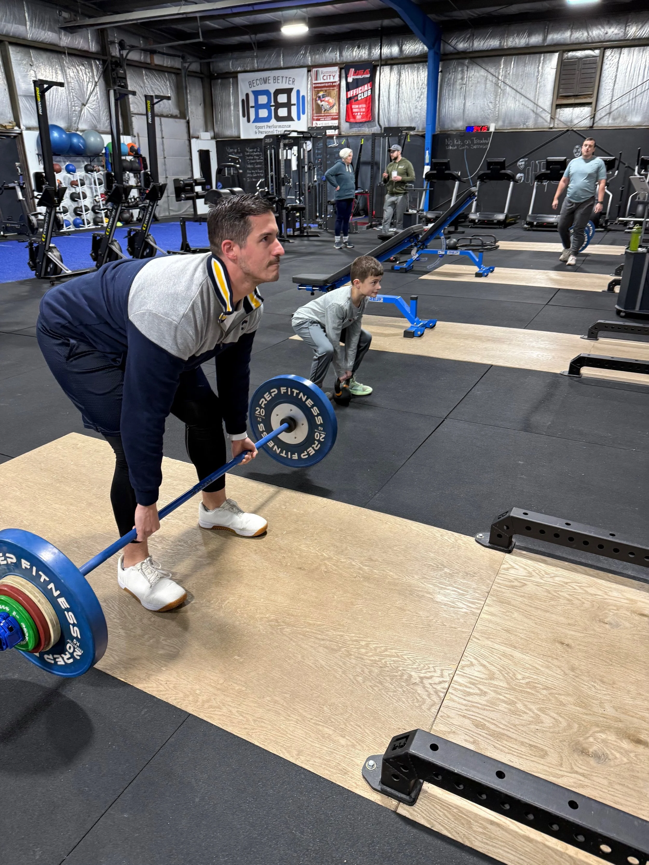 Our private personal training studio has some of the best equipment available in the fitness industry. Our facility was freshly remodeled in 2022 and now contains brand new soft flooring, blue turf, free weights and machines, platforms for heavier lifters, and conditioning/cardio equipment such as rowers, treadmills, sleds, and bikes. We also do not have typical gym memberships, so you will never feel crowded or out of place. We also have added amenities such as our recovery room to help you get the most out of each and every workout you do.